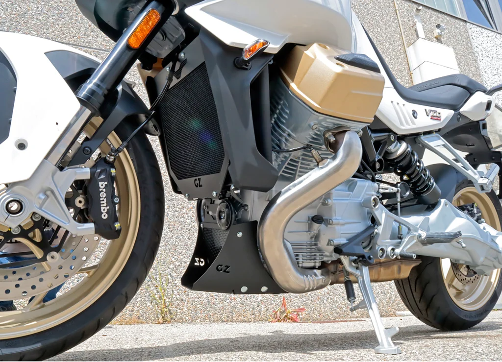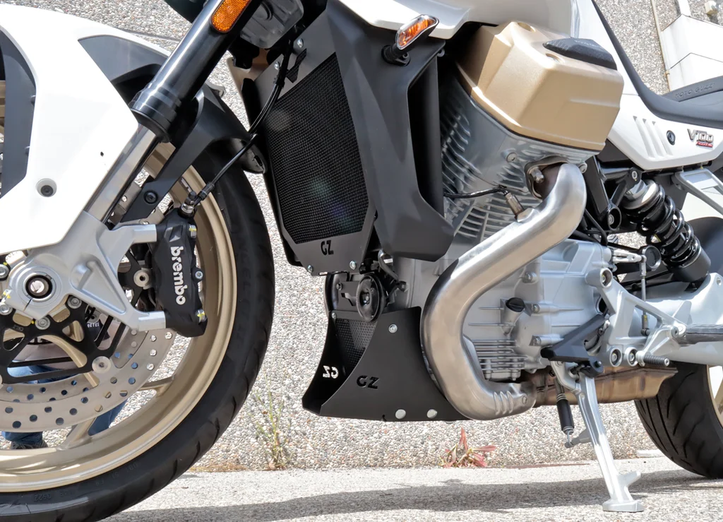 La Protezione Radiatore per V100 Mandello GZ Sport (codice SM6165560) protegge il sistema di raffreddamento della granturismo sportiva Guzzi. Griglia in alluminio strutturale con design che richiama le linee racing della moto. Aperture ottimizzate per flusso d’aria massimo mantenendo protezione da detriti stradali. La V100 Mandello, con le sue prestazioni elevate, richiede un raffreddamento efficiente: questa protezione garantisce sicurezza senza compromessi. Montaggio dedicato sui punti predisposti. Finitura premium. Per chi vuole proteggere la propria V100 senza rinunciare allo stile sportivo.