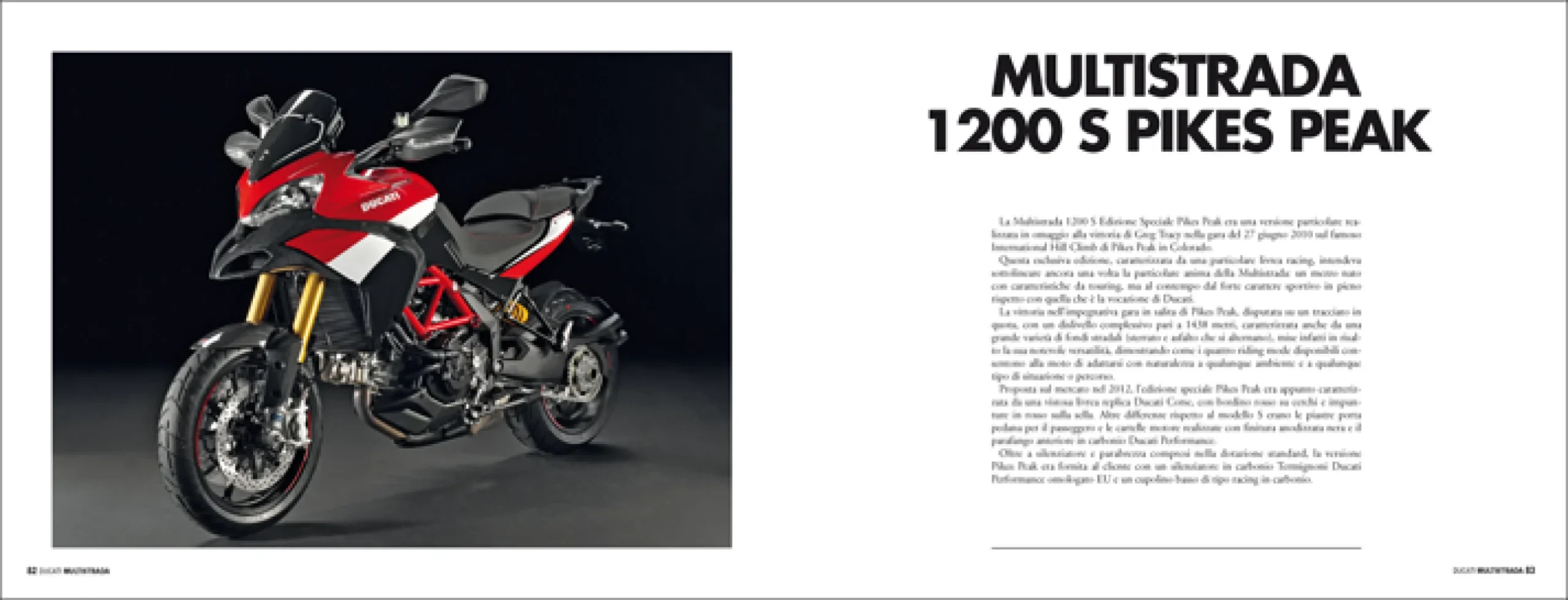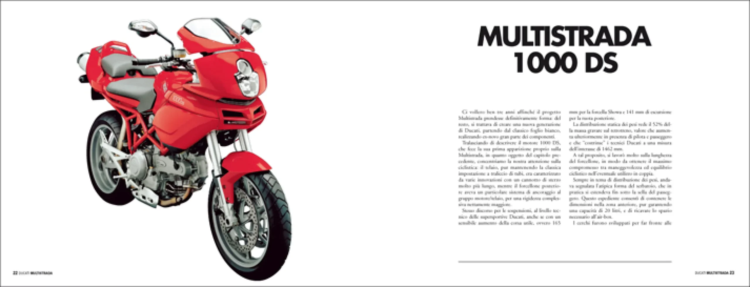 The “Ducati Multistrada V2” book is a comprehensive tribute to the full history of the legendary Ducati Multistrada twin-cylinder, from its first 1000 cc model to the latest production. This volume offers an in-depth analysis of the technical and stylistic evolution of one of the most versatile and beloved motorcycles for adventure travel enthusiasts. With precise technical details and exclusive photographs, the book captures the essence of the Multistrada, a bike that seamlessly blended high performance with comfort and reliability for all terrains. Presented in a prestigious large format (30×23 cm), this 140-page book is enriched with hundreds of color photos that accompany the narrative, creating an immersive experience. Printed on premium-quality paper, “Ducati Multistrada V2” is a must-have for every Ducati enthusiast and adventure motorcycle lover. Priced at 50 euros, this book offers a unique opportunity to explore the history and evolution of the Ducati Multistrada, a bike that has redefined the concept of adventure touring.