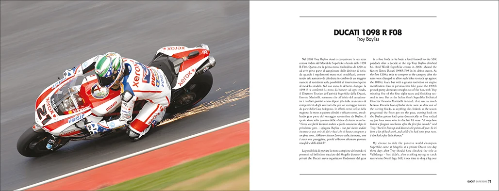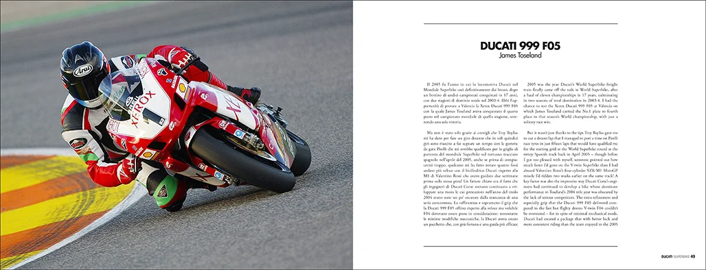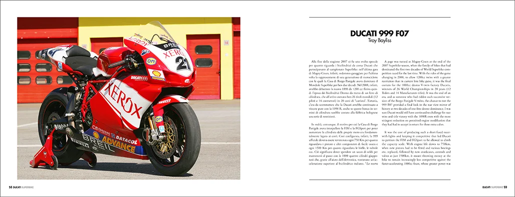 Following the success of the first volume, “Ducati Superbike 2002-2018” continues the thrilling story of Ducati’s twin-cylinder Superbikes from 2002 until the introduction of the revolutionary V4 R in 2019. Written by renowned motorcycle journalist Alan Cathcart, who had the exclusive privilege of personally test-riding all these bikes, this book offers an in-depth look at Ducati’s challenges and triumphs against powerful four-cylinder competitors from Japan, Germany, and the compatriot Aprilia. The book provides a detailed account of these iconic bikes, their successes, and their toughest battles, explaining how Ducati remained committed to its signature Desmo twin-cylinder engine, even when facing difficult odds. With exclusive photos and first-hand insights, this volume offers a unique perspective on the Ducati world in Superbike. This premium edition is printed on high-quality paper, in a large format (30×23 cm), featuring 180 pages and a hardback cover. The text is in both Italian and English, and the book is available as a limited and numbered edition.