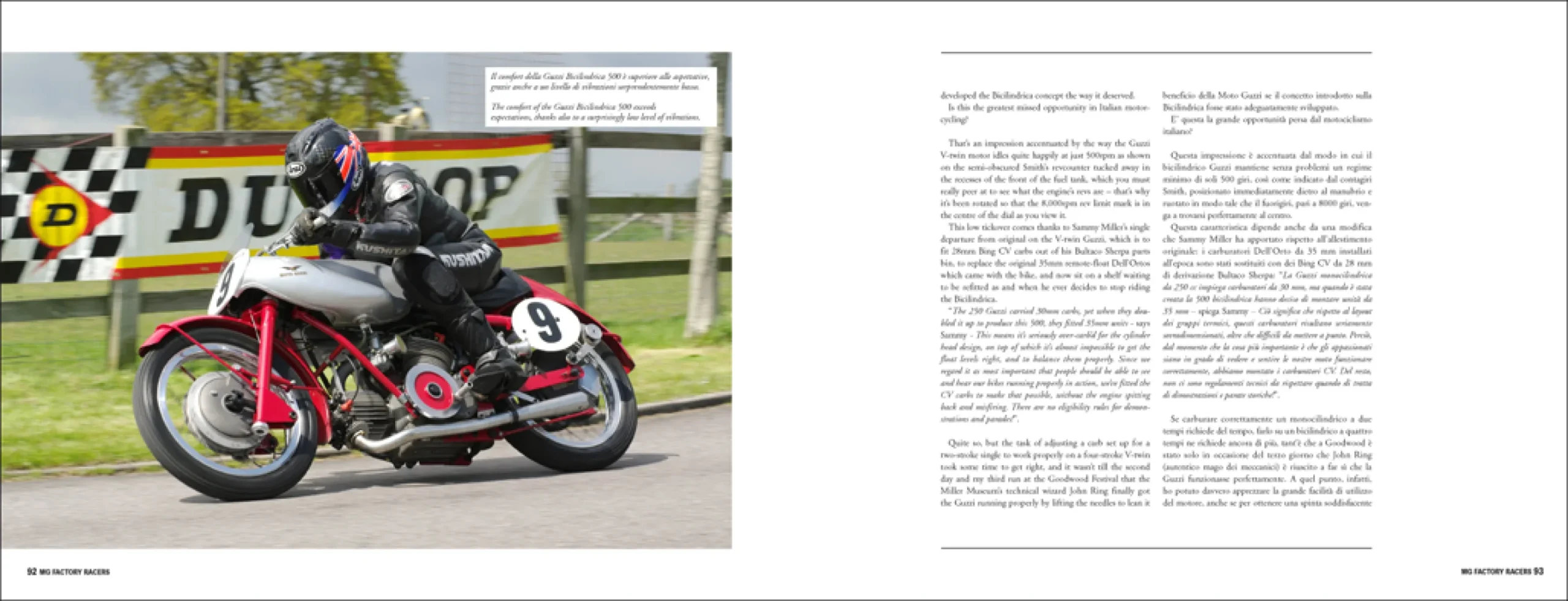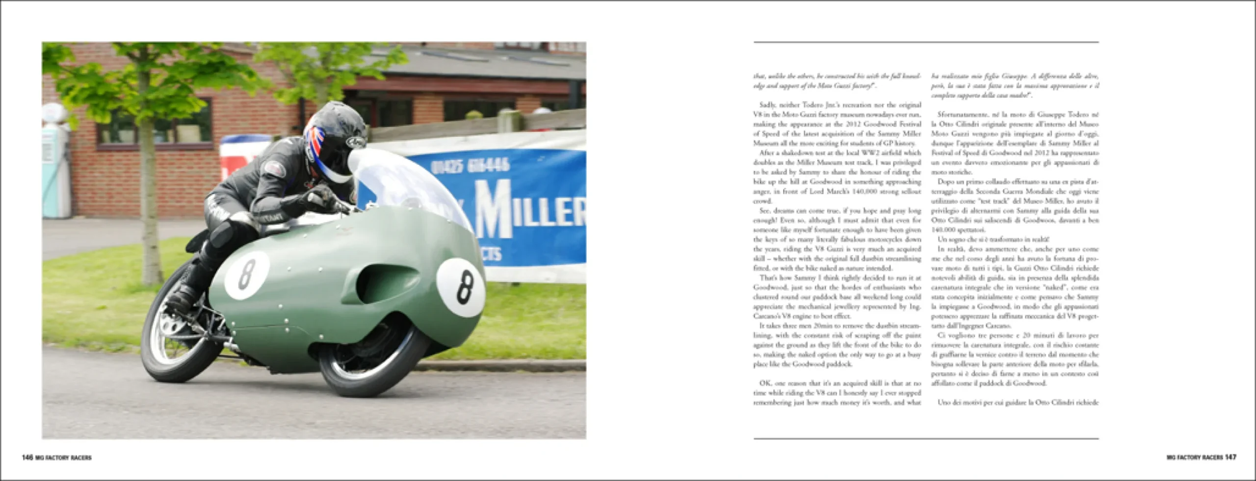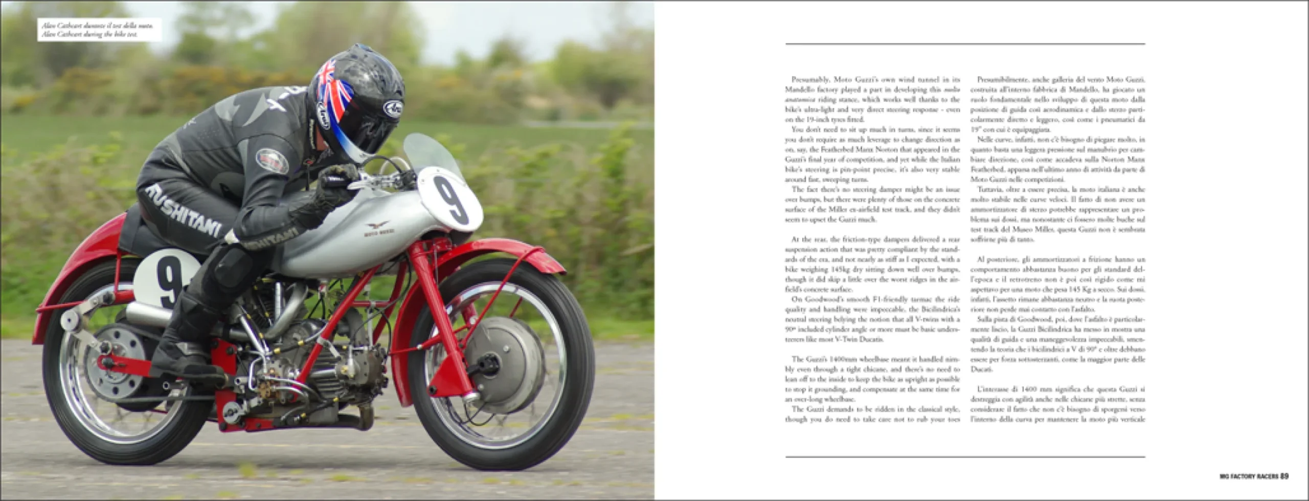 The book “Moto Guzzi Factory Racers” is an extraordinary work that chronicles the history of Moto Guzzi racing motorcycles produced between 1921 and 1957, a golden era for the Italian brand. Written by renowned motorcycle journalist Alan Cathcart, this volume provides a detailed analysis of the technical and riding characteristics of these iconic bikes, with the author having had the unique privilege of personally test-riding them. Among the most legendary motorcycles featured are the Bicilindrica and the powerful Otto Cilindri, both marvels of their time. This premium edition book comes in a large format (30×23 cm), with 160 pages printed on high-quality paper, and a hardcover. In addition to its rich historical and technical content, the book is enhanced with vintage photographs that enrich the stories. Available in a bilingual edition, with text in both Italian and English, “Moto Guzzi Factory Racers” is a must-read for motorcycle enthusiasts and anyone who wants to explore the iconic bikes that shaped the world of racing.