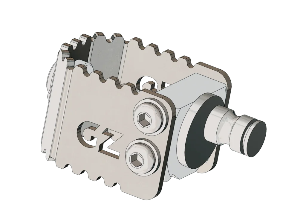 The 2024 Off-Road Brake Pedal by GZ Sport (code SM4108568B) is the updated version for 2024 model year V85TT and Stelvio. Dimensions: 70x50x40mm. Weight: 0.15kg (lighter than previous version). Designed for MY 2024 new attachments, it offers the same off-road performance as the classic model. Grip surface with optimized pattern for technical boots. Folding design for fall protection. Structural aluminum with improved surface treatment. Fine height adjustment. An essential component for tackling off-road with new Guzzi bikes.
