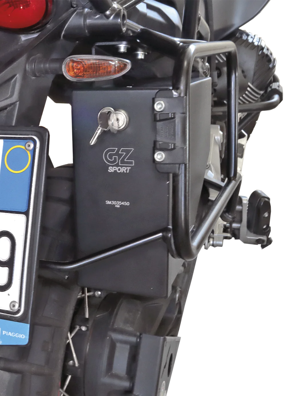 The 6L Tool Box for V85TT by GZ Sport (code SM3035450) is designed specifically for Moto Guzzi V85TT model year 2019 onwards. 6-liter capacity, dimensions 350x230x115mm, weight 1.50kg. The TIG-welded aluminum structure integrates perfectly with the bike’s lines, utilizing original mounting points. Watertight closure protects tools and spares from water and dust. The compact design doesn’t interfere with riding ergonomics or cornering lean angle. Anti-corrosion finish for lasting durability. Complete with mounting kit. The perfect ally for solo adventures.
